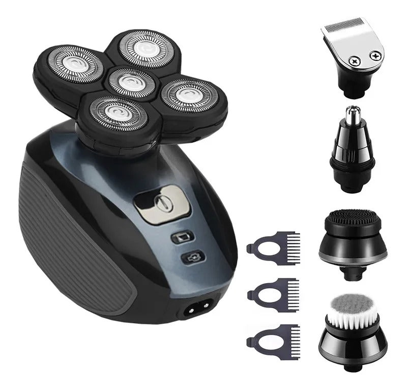 Afeitadora 5 en 1: potencia, precisión y suavidad en un solo equipo. Perfecta para cabeza, barba y rostro, con accesorios para un cuidado completo.
